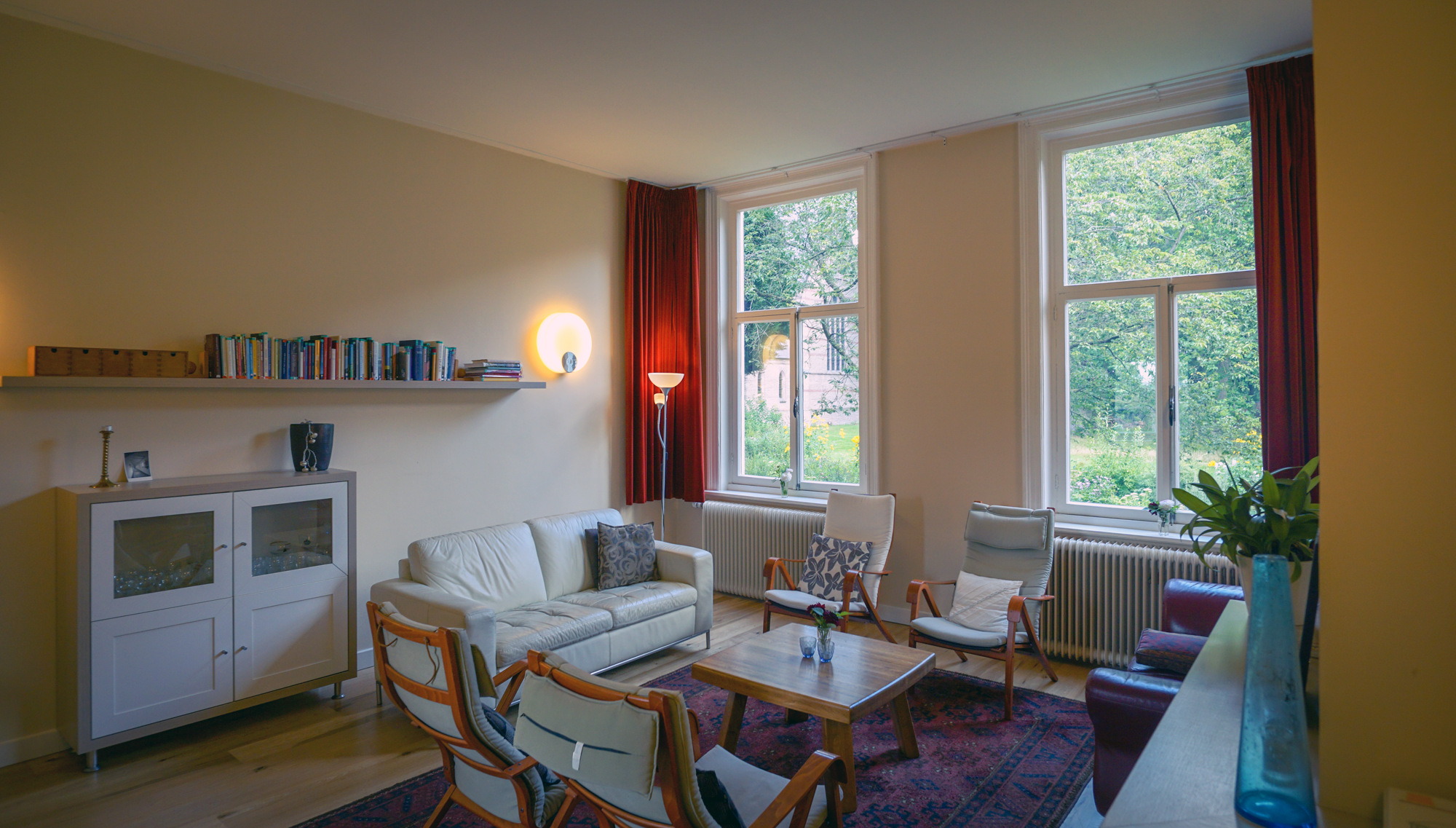 - Uitzicht: oost – kloostertuin; west – abdijweide